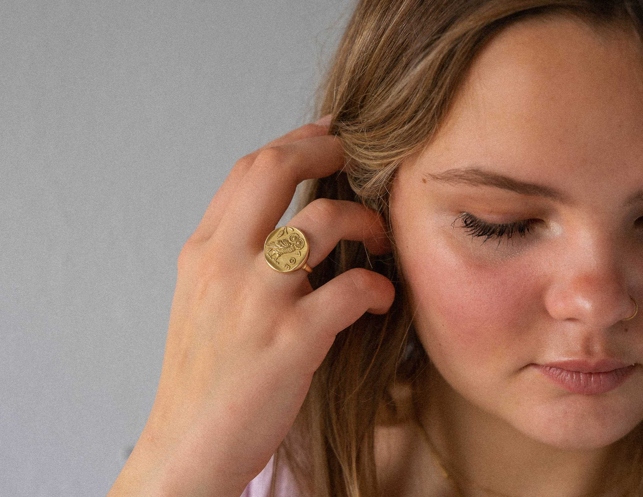 Ancient Greek Istros Silver Coin in 18K Gold Reversible Ring