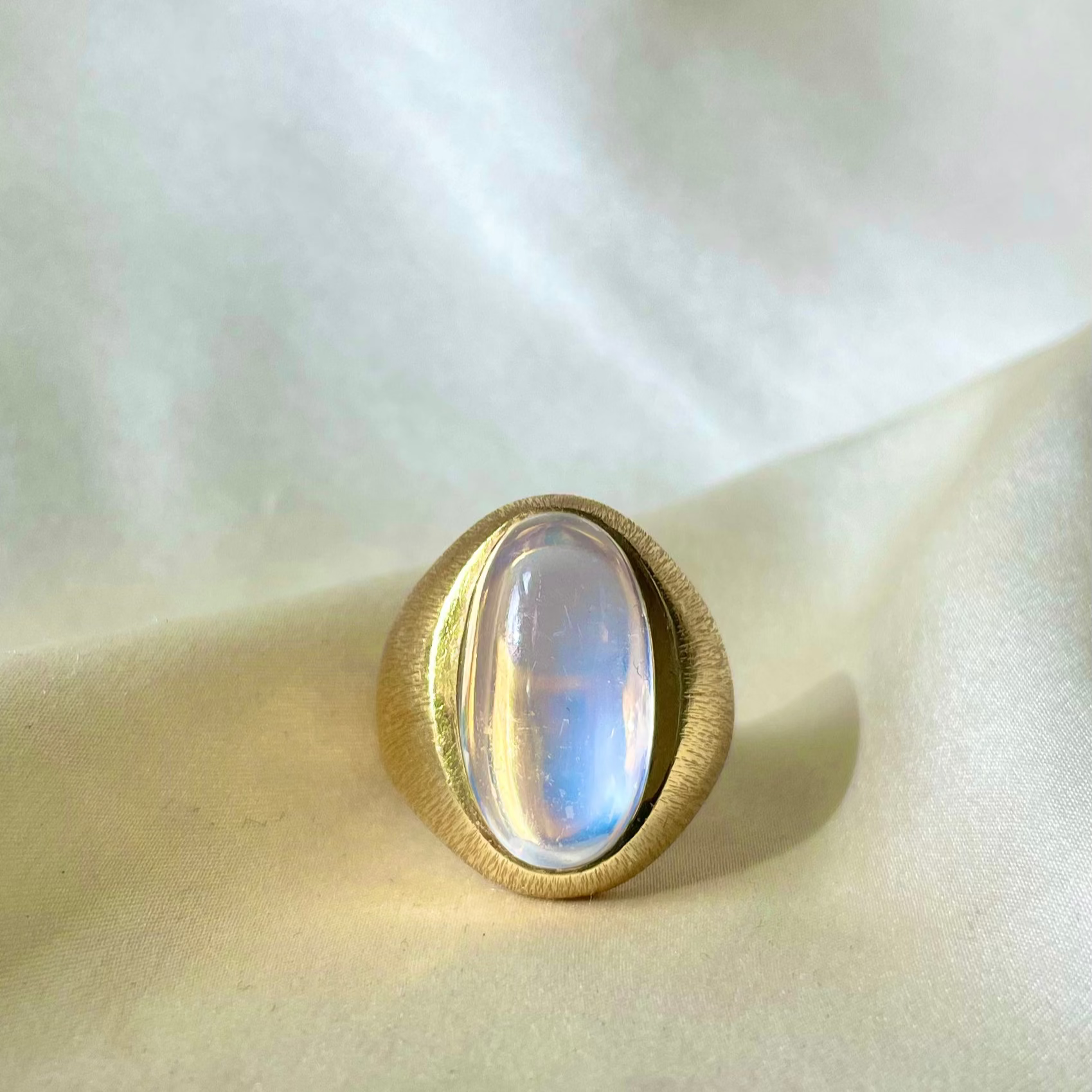 Dreamy Modernist 18K Oval Moonstone Ring with Textured Finish