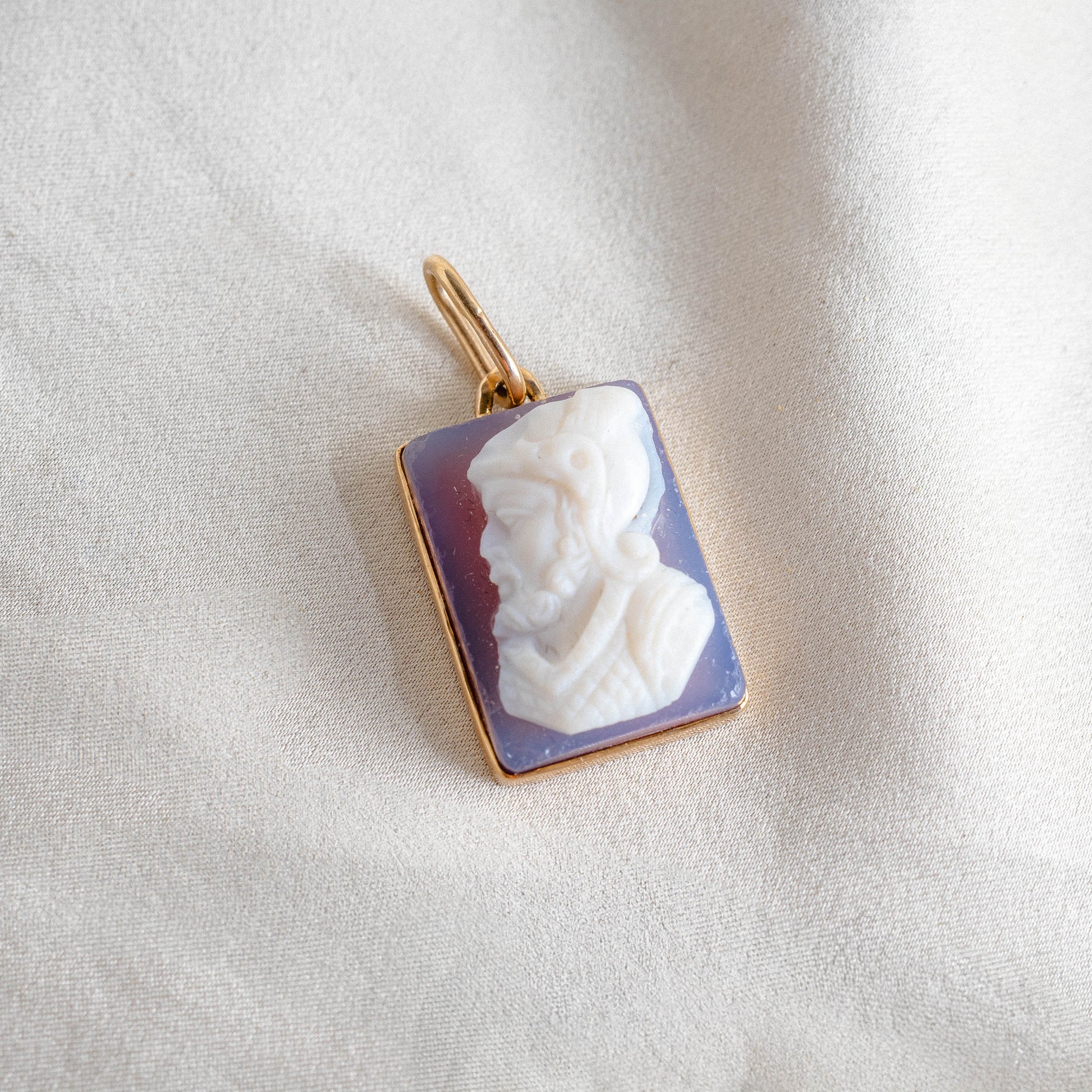 Beautifully carved 9k agate and shell Roman soldier cameo pendant
