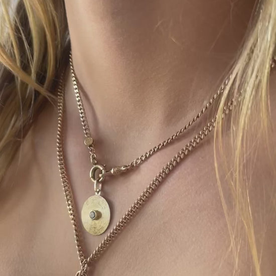 A timeless vintage piece with classic appeal, this 14 karat yellow gold curb chain was originally designed as a pocket watch chain and now makes an effortlessly stylish necklace. The links are beautifully proportioned with a subtle weight and a smooth, comfortable lay.
